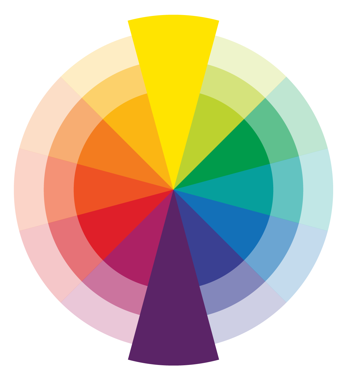 Monochromatic colour combinations use variations of light, medium and dark shades of a single hue. Such combinations are created by adding different amounts of white or black to the base colour.