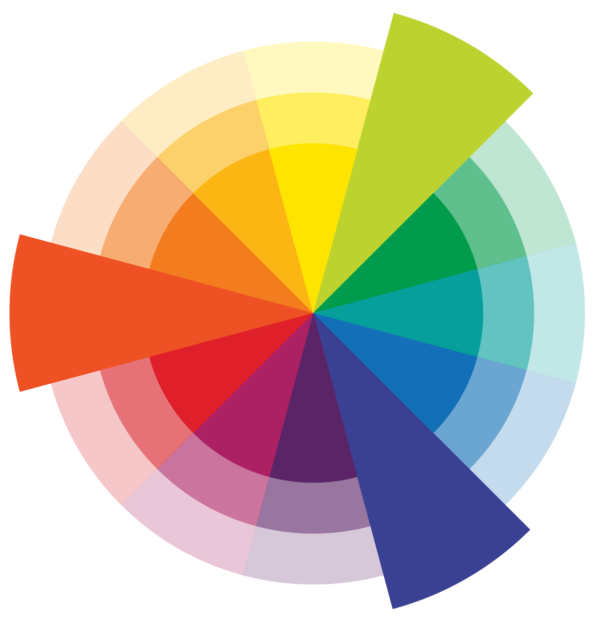 Analogous colour combinations are based on three colours that are adjacent to each other on the colour wheel. The middle colour may be called the dominant colour.